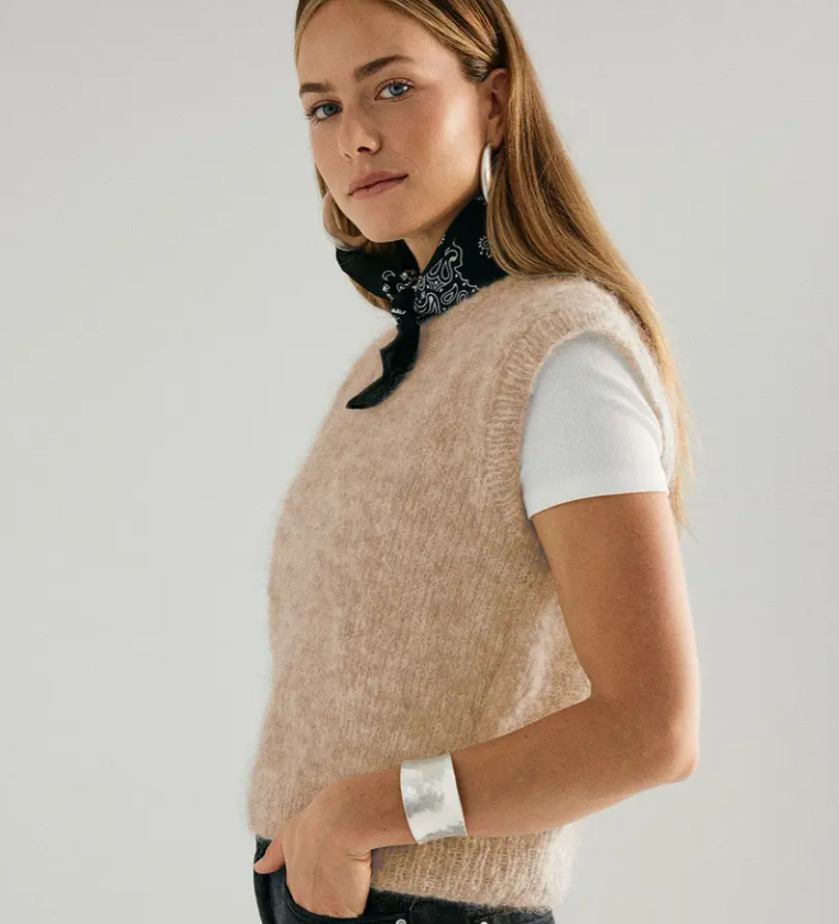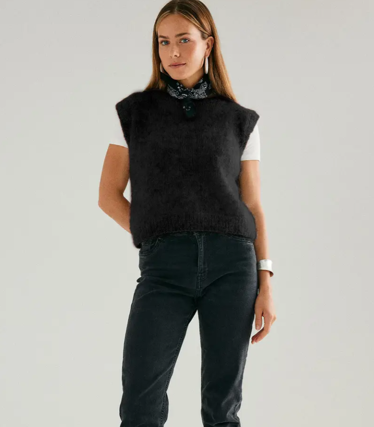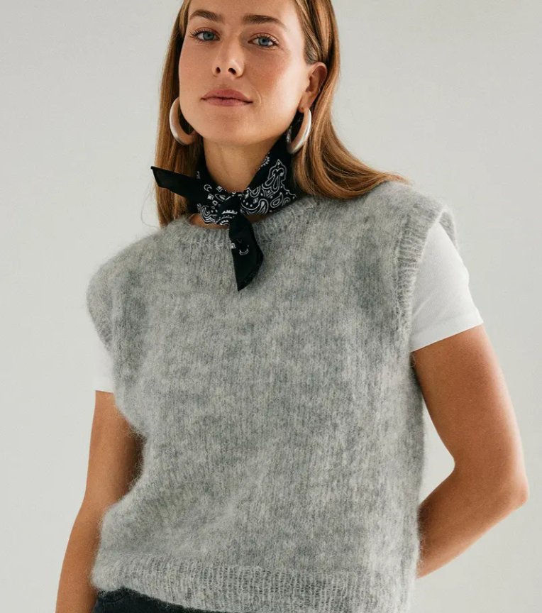 Jednoduchá na pletenie, praktická na nosenie. Vesta je stále módna a nemala by vám v šatníku chýbať. Vesta je ako chameleón. Ako športová bude pôsobiť v kombinácii s tričkom a džínsami. S košeľou a klasickými nohavicami vytvoríte elegantný outfit do kancelárie alebo na večer. Vestu upleťte z ľahučkej mohérovej priadze s elastanom Pokračovať