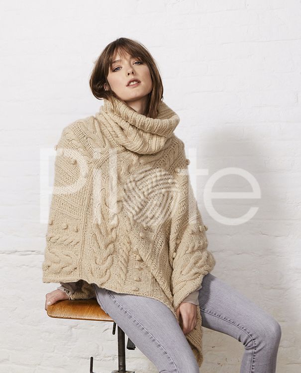 Pončo s osmičkovým vzorom, nopkami a veľkým rolákom - je proste top oblečenie na jeseň. Pokračovať