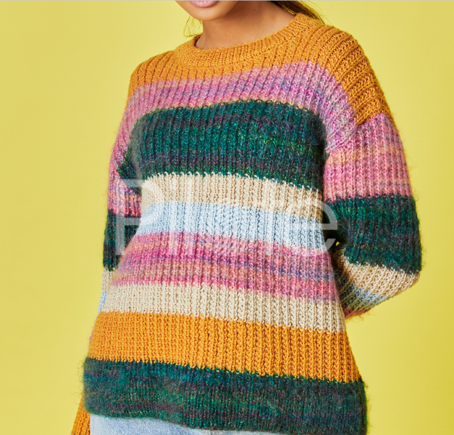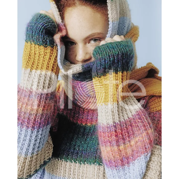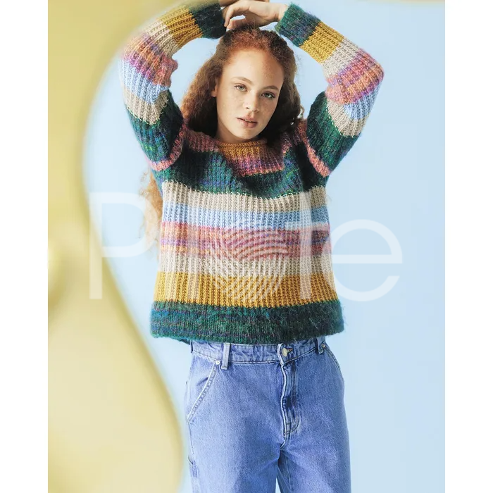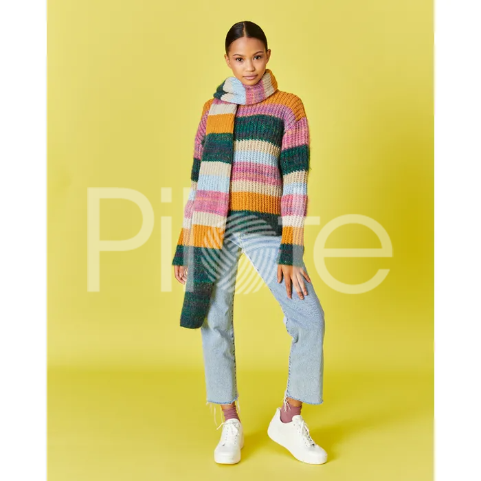 Pulóver ktorý vám zdvihne náladu! V prúžkoch sa striedajú melírované priadze Pingo TURBILLON a jednofarebné Pingo Fluffy. Pokračovať