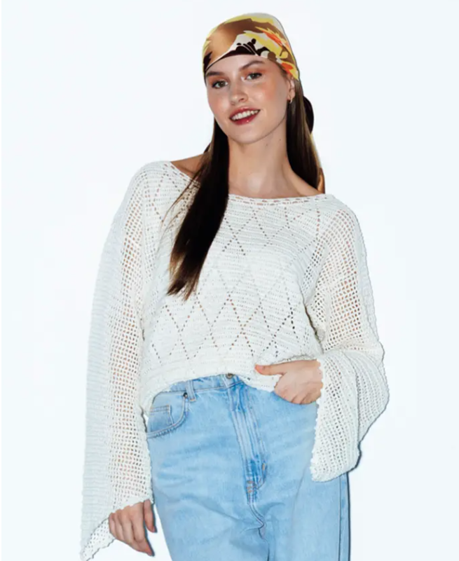 Privítajte prvé slnečné dni v tomto úžasnom pulóvri. Letný retro model v štýle 60-tych rokov uháčkujete z jemnej bavlnenej priadze Pingo COCO vo farbe Ecru. Pokračovať