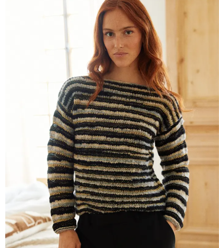 Nadčasový pulóver s lodičkovým výstrihom. Jednoduchý, rovný strih a priadza Phil Star Concept s efektným páskovaním, to je ideálne spojenie. Návod na pletenie je vhodný aj pre začiatočníkov. 1 klbko = 1 pulóver a k tomu návod zadarmo! Pokračovať