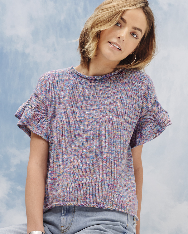 Leto v znamení farieb. Pulóver rovného strihu s nazbieranými rukávmi. Jednoduchý letný model zvládnu upliesť aj šikovný začiatočníci. Na pletenie použite melírovanú bavlnenú priadzu Phil RAINBOW a ihlice číslo 3,5. Pokračovať