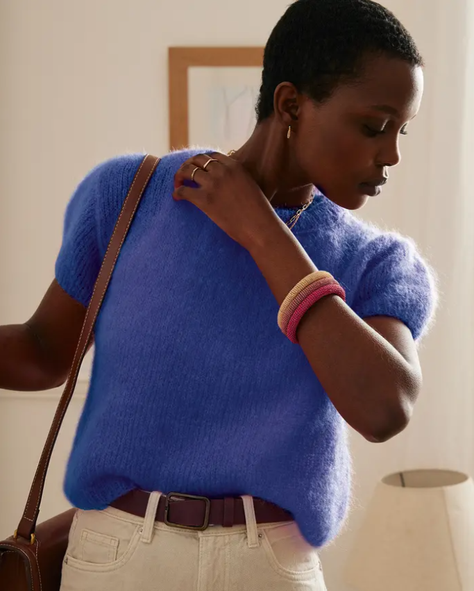 Lahodná chuť. Cítite to? Neuveriteľne jemný a nadýchaný pulóver s krátkym rukávom, pletený v jednom kuse. Tento model si určite upleťte z ľahučkej priadze s kidmohérom Phil CHIC. Pokračovať
