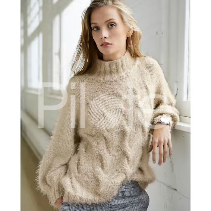 Krásny pulóver s balónovými rukávmi a postupne sa strácajúcimi osmičkami. Model je upletený z priadze Phil Beaugency na ihliciach číslo 5,5. Návod pre veľkosti 34 - 52. Úroveň pletenia: pokročilí Pokračovať