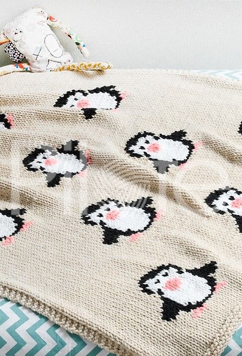 Detská pletená deka so žakárovým vzorom. Happy Feet u vás doma! Náročnosť: pokročilí. Tučniaci sú pletení žakárovým vzorom, zobáky a nohy sú dodatočne vyšité. Návod ZADARMO! Pokračovať