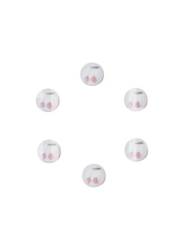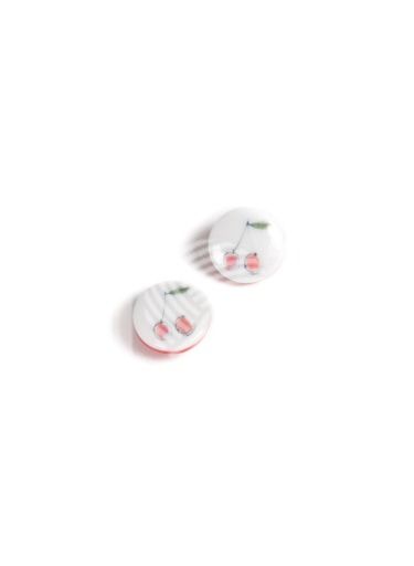 Roztomilý 13 mm gombík s potlačou čerešní. Spodná strana a uško sú tmavočervené. Povrchová úprava - lesklý lak. Tento gombík rozžiari vaše oblečenie pre bábätká a deti. Vyrobené vo Francúzsku.