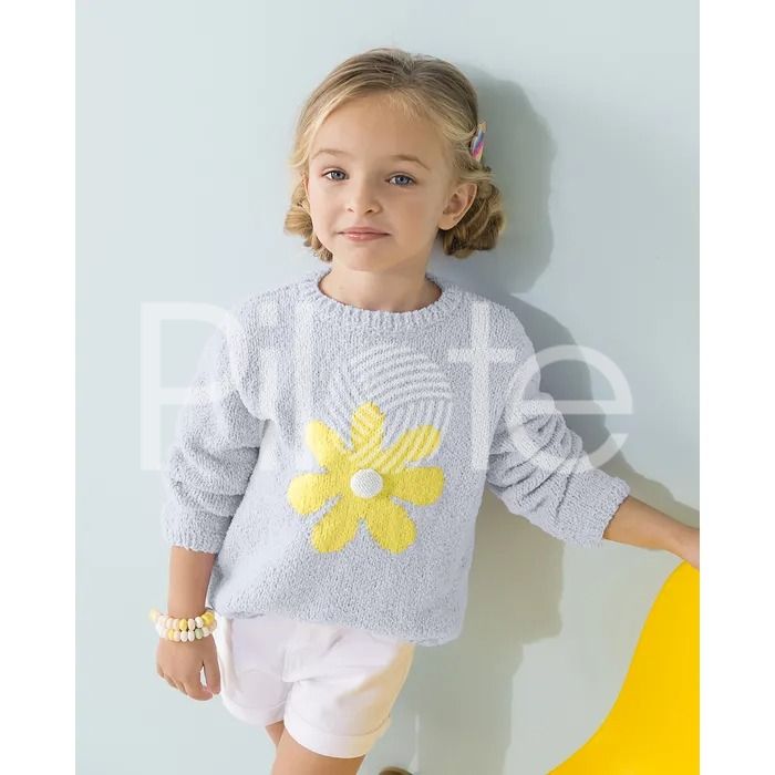 Upleťte pre vaše romantické dievčatá pulóver so sedmokráskou. Roztomilý jarný pulóver so žakárovým vzorom z mäkkej priadze PHIL BABY DOLL. Pokračovať
