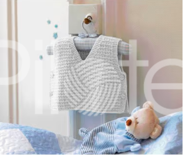 Detská vestička upletená z jemnej priadze CALINOU sa bábätkám určite bude páčiť. Vďaka zapínaniu na bokoch a výstrihu do V sa veľmi ľahko oblieka. V zime ju pohodlne oblečiete aj na sveter. Pokračovať