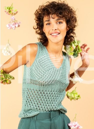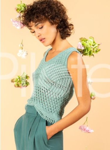 Tielko s ažúrovými vzormi, ktoré potešia každú pletiarku. Model je upletený z recyklovanej bavlnenej priadze ECOTON.