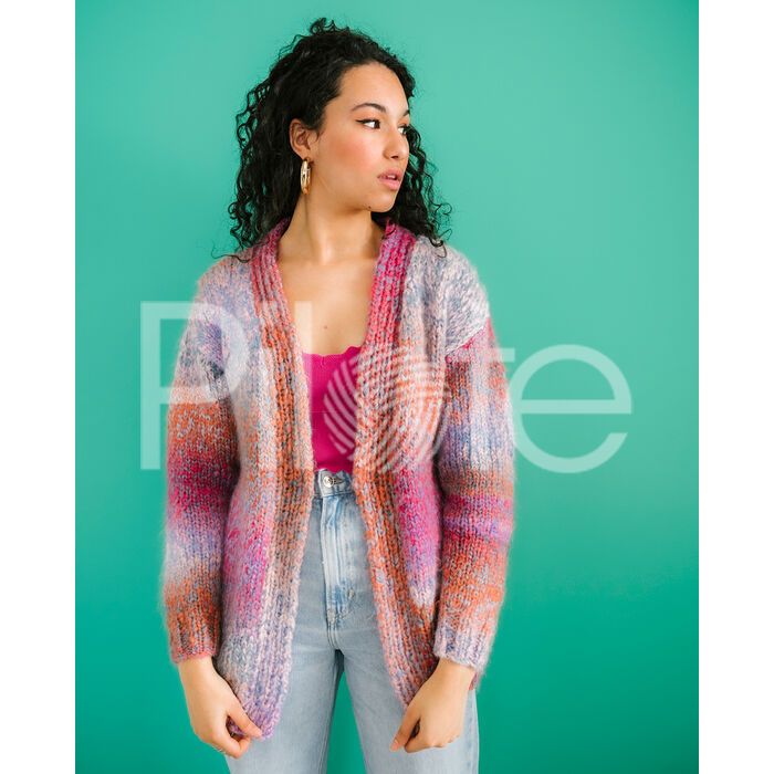 Jednoduchý dámsky sveter bez zapínania. Model je pletený dvojmo z 2 melírovaných priadzí, takže každý model bude originál! Pokračovať