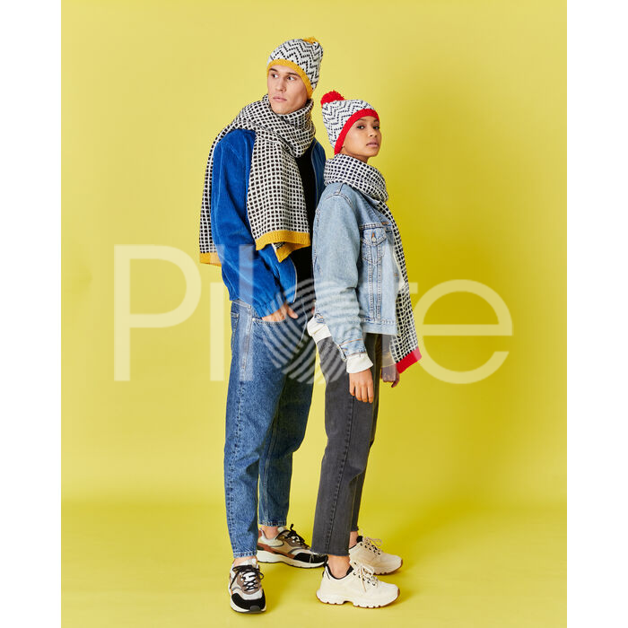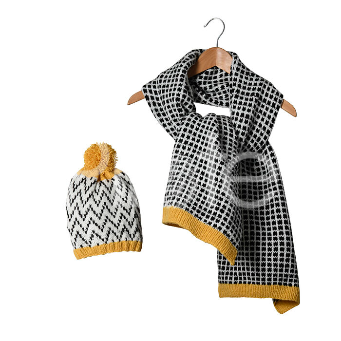 Šál a čiapka... neoddeliteľné! Unisex žakárový vzor je použitý na šál a čiapku pre dospelých. Modely odporúčame upliesť z mäkkej a jemnej priadze PINGO FIRST. Pokračovať