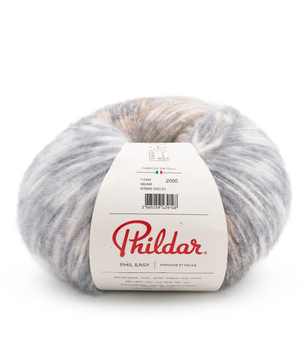 Phil Easy je hebká priadza vyrobená v Taliansku z prirodzene hrejivých materiálov, obsahuje 32% vlny a16% alpaky.