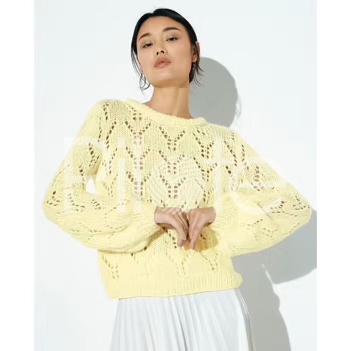 Závan jarnej jemnosti a ľahkosti. To všetko má tento pulóver s ažúrovým vzorom a balónovými rukávmi. Model je upletený z nadýchanej priadze so vzácnou egyptskou bavlnou - PHIL BONBON, farba Zeste. Na vytvorenie tohto modelu budete potrebovať: ihlice číslo 5,5, číslo 7 a elastickú niť na pletenie. Návod pre veľkosti: 34/36, 38/40, 42/44, 46/48, 50/52. Úroveň pletenia: pokročilí