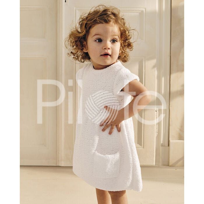 Dokonalé "malé biele" šaty pre vašu malú princeznú. Jednoduché a jemné pletené šaty z mäkučkej bavlnenej priadze PHIL BABY DOLL. Pokračovať