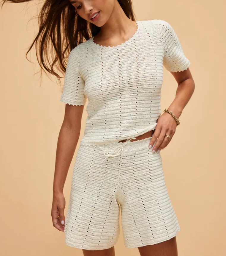Háčkované dámske šortky s jemným dierkovým vzorom. Perfektný model na leto uháčkujte z čistej bavlny Pingo COCO, háčikom číslo 2,5. Pokračovať