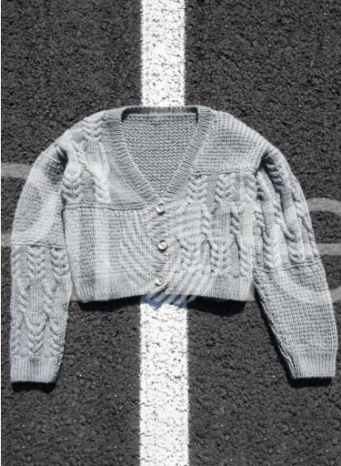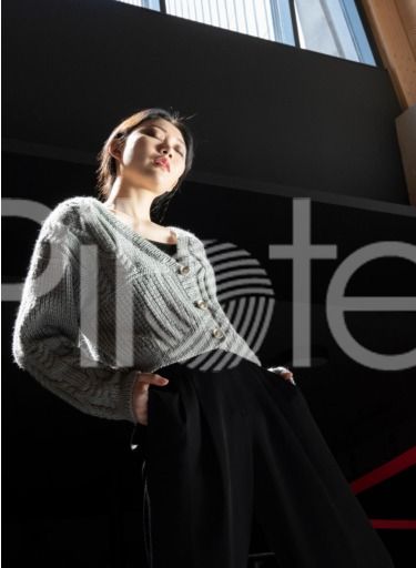 Dámsky sveter s v-výstrihom a pleteným pačvorkovým vzorom z vlny Magic+. Úroveň pletenia: pokročilí Pokračovať