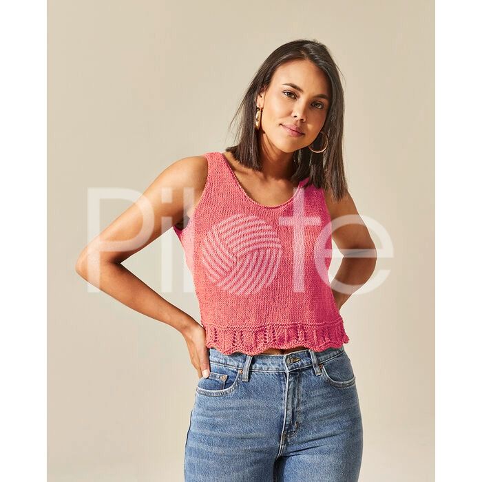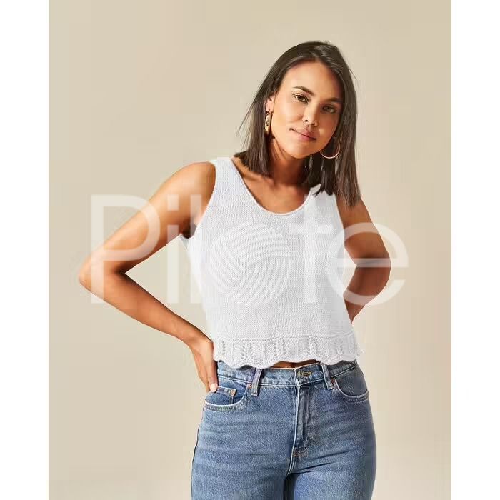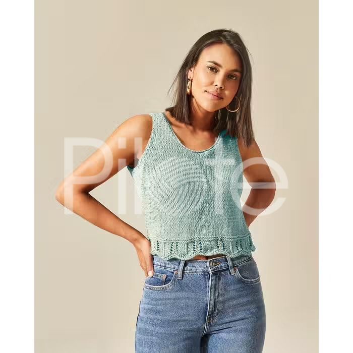 Pohrajte sa z lícovým žerzejom, ažúrovým lemom a upleťte si horúci trend tohto leta CROP-TOP. Na vytvorenie tohto modelu budete potrebovať mäkkú prírodnú priadzu PHIL RUSTQUE - výber farby nechám na vás, ihlice číslo 3,5 a číslo 4. Návod na pletenie pre veľkosti: 34/36, 38/40, 42/44, 46/48, 50/52. Úroveň pletenia: mierne pokročilý